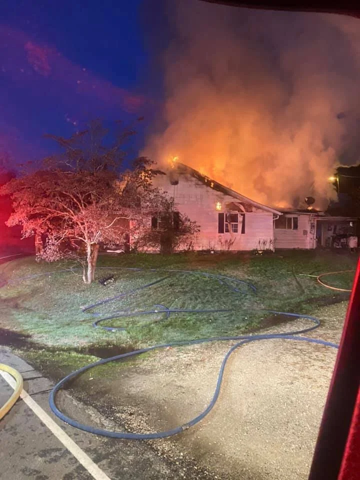 The Big Sandy Fire Department was called out to Highway 707 early Sunday morning, Nov. 7, to a report of a structure fire. Finding a fully involved fire, the Louisa, Fallsburg, East Fork and England Hill fire departments were called out to assist. Fallsburg Fire Chief Chris Jobe said that local resident Bill Rickman was on his way to work at Yatesville Lake when he spotted the fire and went to the residence, where he knocked on the doors and windows to wake up the home owners, Marshall and Samantha Endicott. “He said the dog started barking and they woke up,” Jobe said. “The home was a total loss.” A Go-Fund-Me account has been set up on Facebook for the couple and their two children.