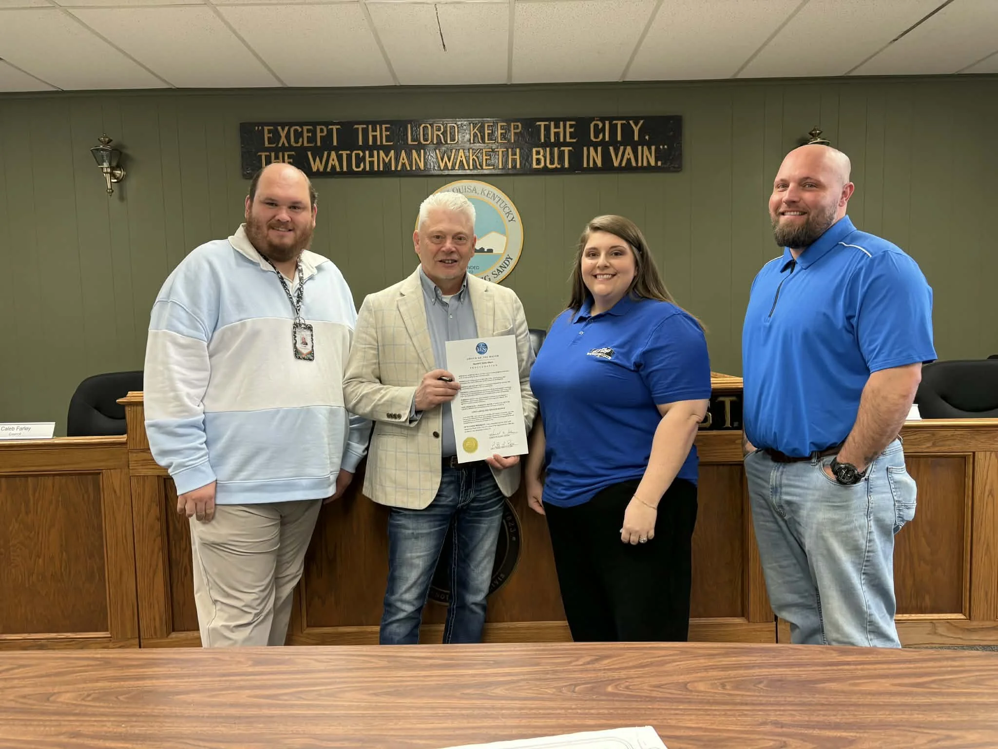 The mayor stated in the proclamation that he also calls upon all Louisa citizens, community agencies, faith groups, medical facilities, elected leaders and businesses to increase their participation in our efforts to support families in preventing child abuse. The proclamation was signed in the presence of Madison Arrington Wilson, Cody Osborne and Josh Watkins from The Drop.
