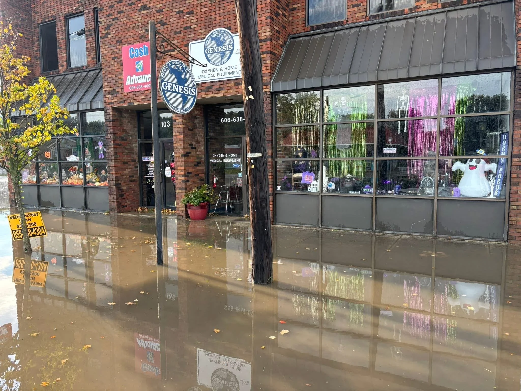 Madison Street in downtown Louisa was closed for nearly an hour Sunday afternoon, Sept. 21, after a sudden downpour and hail flooded the street causing drains to back up.