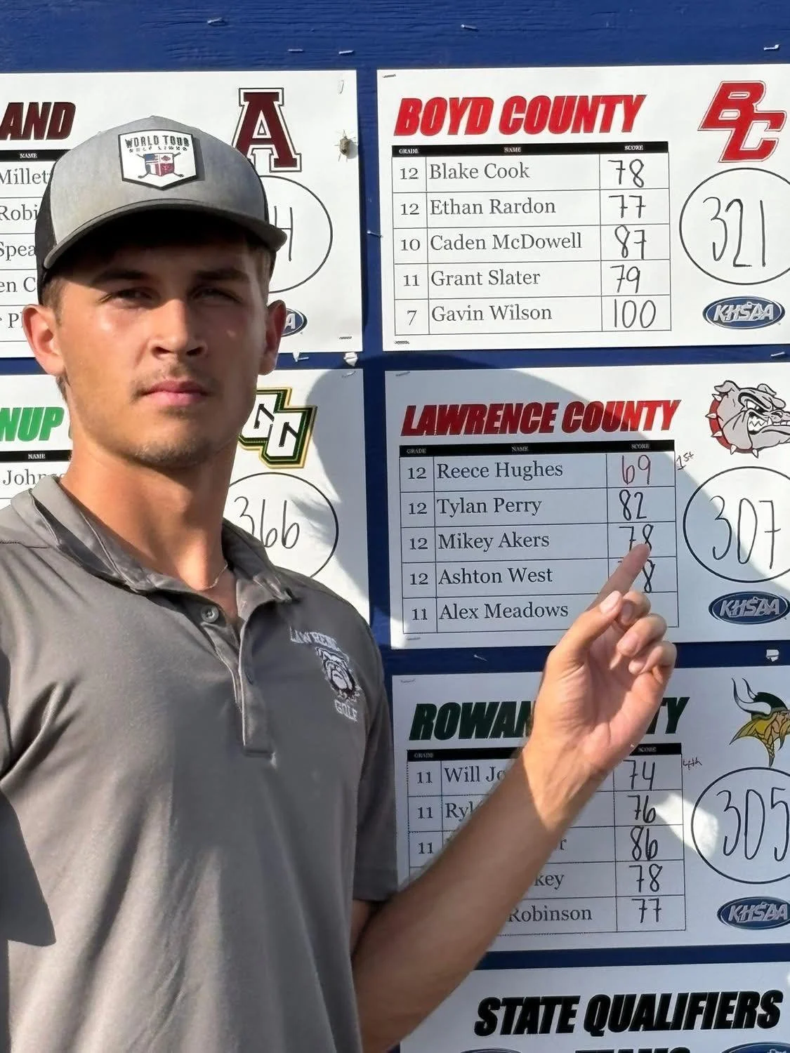 The Bulldogs contended for the Region 12 boys’ golf team title. Lawrence County delivered a team score of 307, placing third behind runner-up Mason County (306) and champion Rowan County (305).